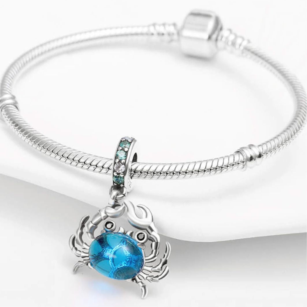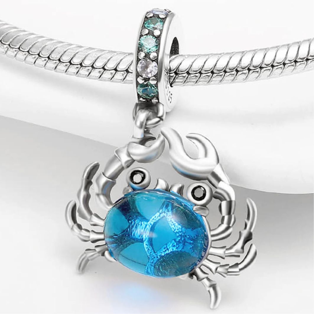The Blue Crab Charm is a delightful and whimsical charm that captures the essence of the ocean, the joy of seaside adventures, and the timeless beauty of these captivating creatures. It's perfect for beach lovers, marine life enthusiasts, and anyone who appreciates the allure and charm of the enchanting blue crab. The design features a beautifully detailed crab adorned with a blue gem, evoking the vibrant hues of the ocean and the fascinating world beneath the waves. This captivating accessory embodies the essence of the sea, the spirit of exploration, and the love for all things marine.