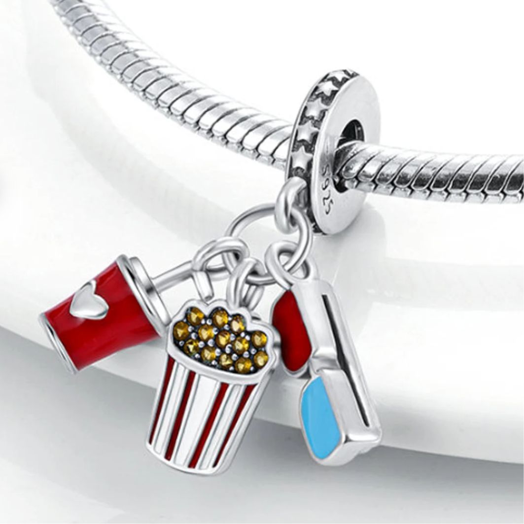 This charming and unique charm captures the passion and excitement of those who love movies and cinema. The charm features a detailed design of a drink, pop corn and 3D glasses. The Cinema Lover Charm is a great accessory for movie buffs, film enthusiasts and people who appreciate the art and magic of cinema. At Charmsey, we are dedicated to offering unique and high-quality charms that cater to a variety of interests so add the Cinema Lover Charm to your collection today and let the magic and excitement of the movies inspire you!
