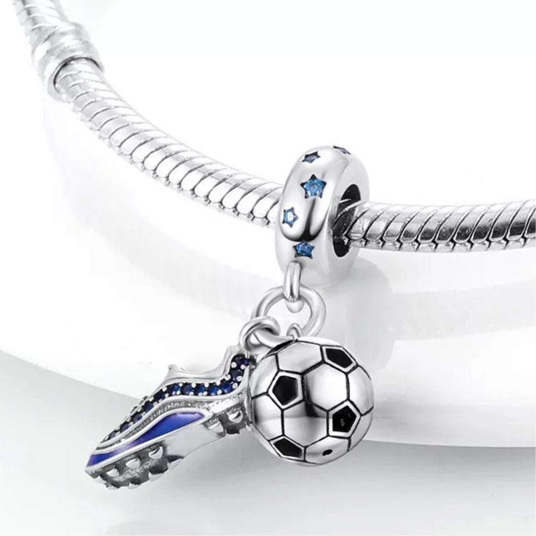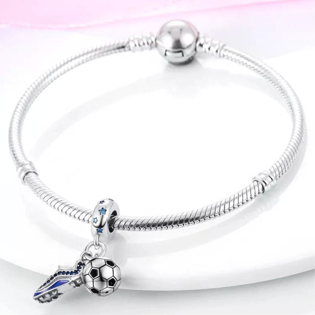 The Dangling Football Charm is the perfect way to showcase your love for football in style. This exquisite charm with a football and football boot is the perfect addition to any sports lover's jewellery collection and is sure to catch the eye of any football enthusiast. Whether you're a professional football player or simply someone who loves watching the game, the Dangling Football Charm is the perfect accessory to showcase your passion for football. Order yours today and take the first step towards showing off your love for the game in style!