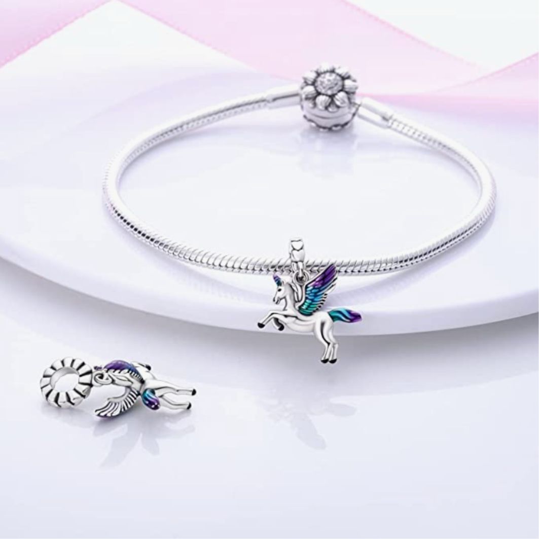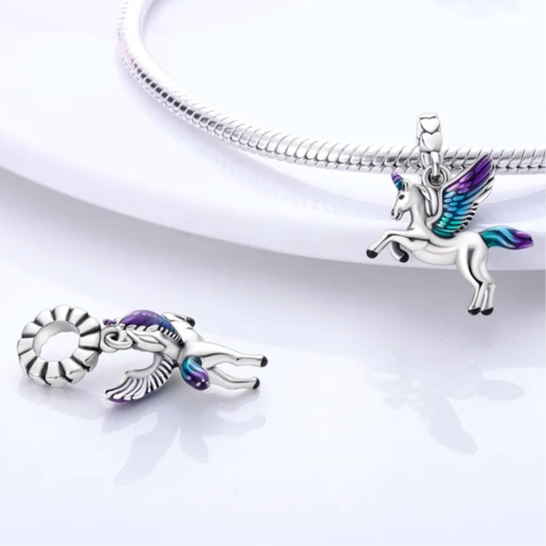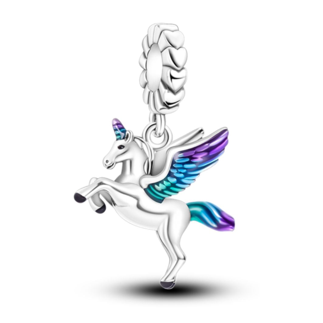 Introducing the Flying Unicorn Charm - a magical and enchanting addition to your charm collection that captures the spirit of dreams, fantasy, and boundless imagination. This accessory is perfect for those who believe in the power of dreams, the allure of the mystical, and the joy of embracing life's endless possibilities. The design features a beautifully detailed flying unicorn with gracefully arched wings, a flowing mane, and a slender, spiraled horn. Each element is adorned with vibrant enamel, evoking a sense of wonder, whimsy, and the magic of a world where anything is possible. This captivating accessory embodies the essence of fantasy, the spirit of adventure, and the enchantment of life's most treasured dreams.