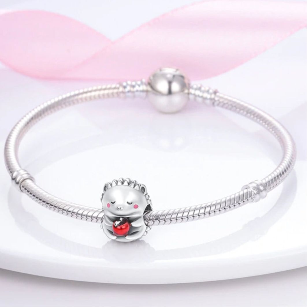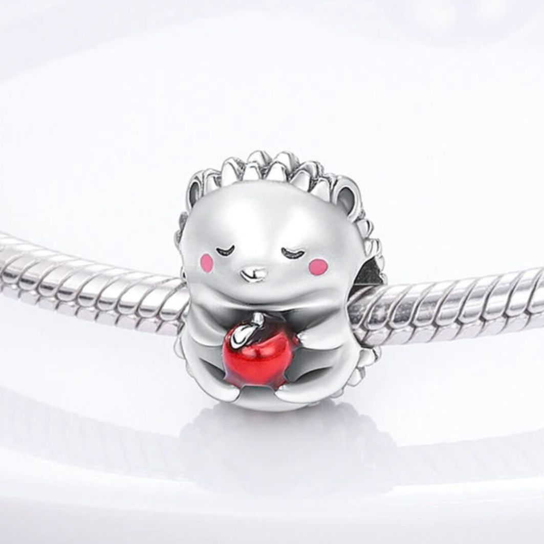 The Hedgehog Charm is loveable and cute, with it's rosy pink cheeks, and bright red apple between its feet. This adorable charm is sure to put a smile on anyone's face and capture their hearts. Whether you're a lover of all things cute and whimsical or simply looking for a unique way to add some fun to your outfit, the Hedgehog Charm is the perfect accessory for you.