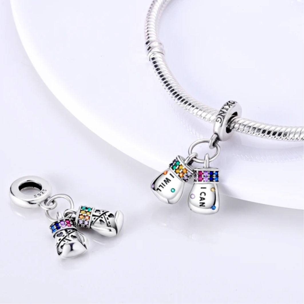 The I Will, I Can Boxing Charm is a bold and inspiring addition to any charm collection. These gloves are not only a stunning piece of jewellery but also carry a powerful message of motivation and determination. The gloves feature an intricate design with colourful gemstones that sparkle and shine; with 'I Will' on one glove and 'I Can' on the other. This motivational message is a reminder that with hard work and dedication, anything is possible. Whether you're a boxer or simply someone who loves the sport, these gloves are the perfect way to showcase your passion and motivation!