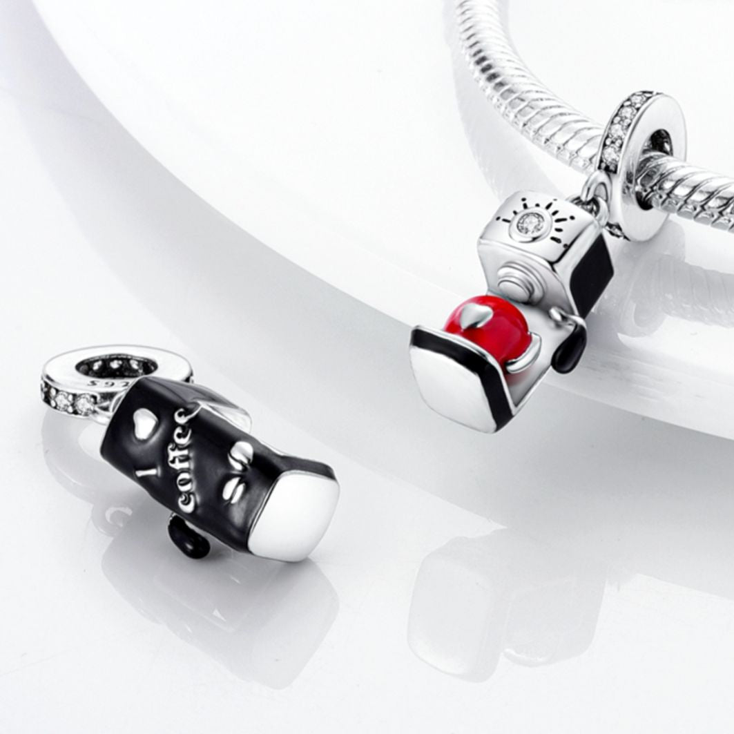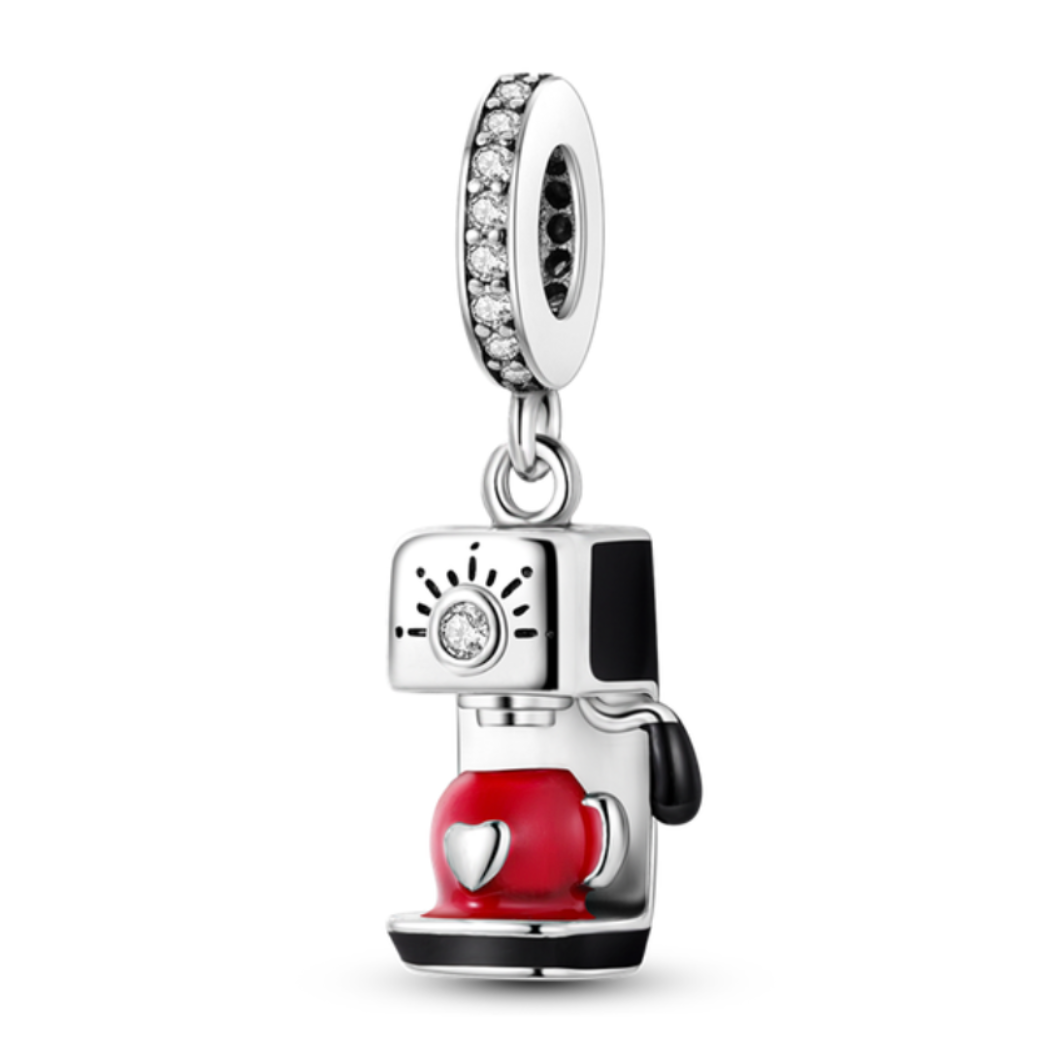 Our "I Love Coffee" Charm is a mini tribute to the enduring love affair with coffee. At the heart of this charm is a meticulously crafted coffee machine, complete with a cup ready to receive that perfect pour. Flip the charm over to reveal the phrase "I Love Coffee" affectionately inscribed on the back, confirming your devotion to this beloved brew.