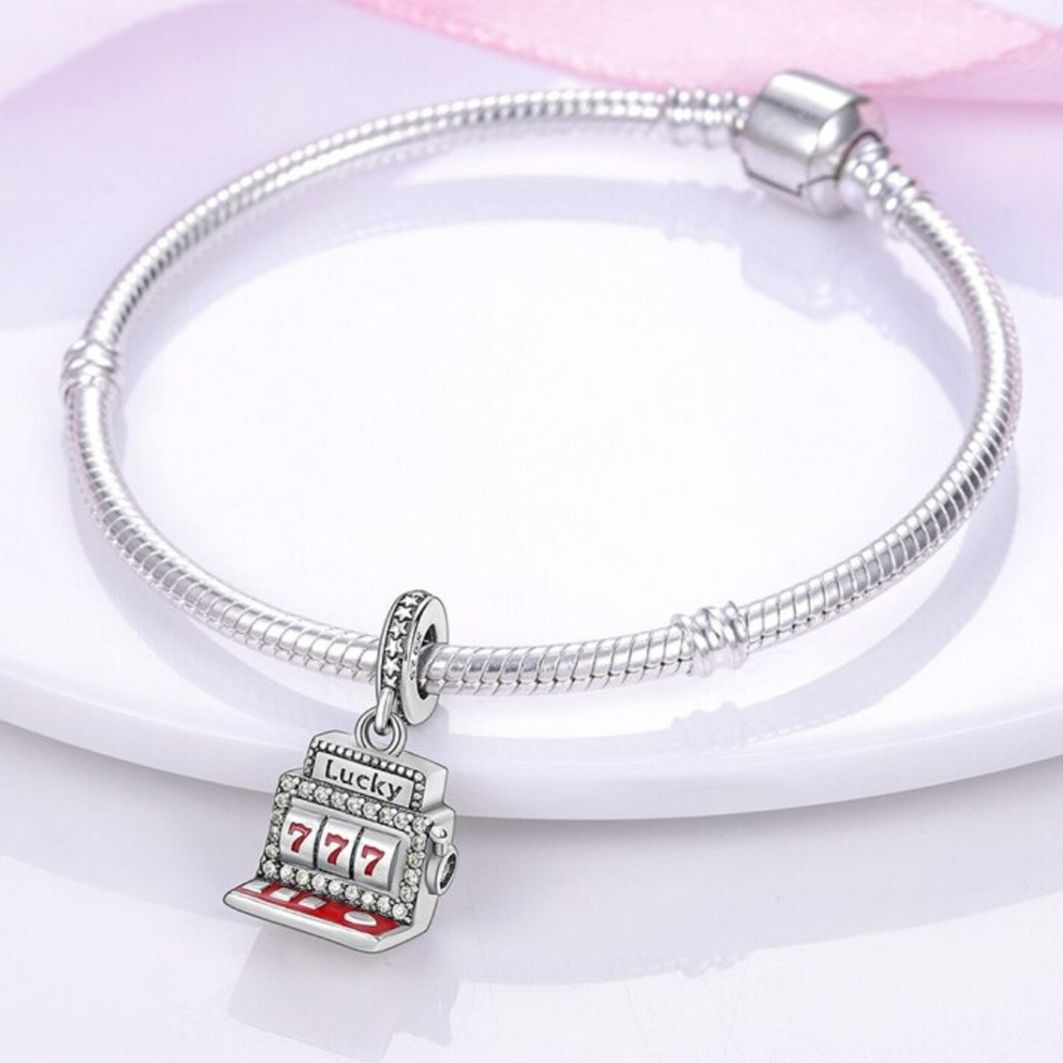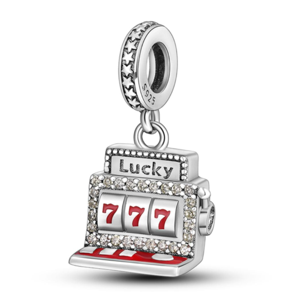 Step right up and try your luck with our Lucky 777 Slot Machine Charm! This whimsical charm celebrates the thrill of the casino, the gleam of gold coins, and the exhilarating rush of hitting the jackpot.Incredibly detailed, this charm features a miniature slot machine with the iconic lucky 777, the symbol universally recognized for good fortune. Each detail of this charm is designed to replicate the joy and excitement of a real-life casino win, right down to the playful colors and the promise of luck spelled out in bright, bold digits.