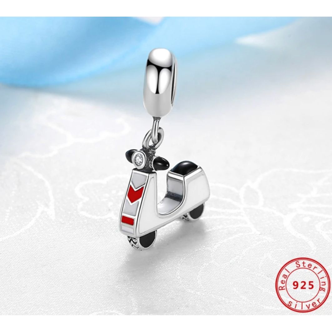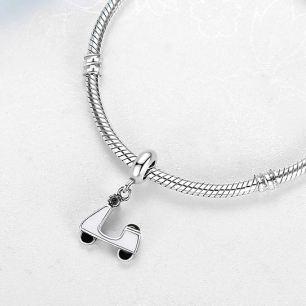Introducing our Motor Scooter Charm, the perfect addition to any charm bracelet or necklace! Made with high-quality materials and expert craftsmanship, this charm is sure to capture the attention of anyone who sees it. Crafted in the shape of a sleek motor scooter this charm features intricate details that truly bring it to life. From the wheels to the handlebars, every aspect of this charm has been carefully designed to create a realistic and stunning piece of jewelry. Whether you are a fan of motor scooters or simply love collecting unique and beautiful charms, this motor scooter charm is a must-have. Its is sure to be a conversation starter and will make a perfect gift for anyone who loves motorcycles or scooters.