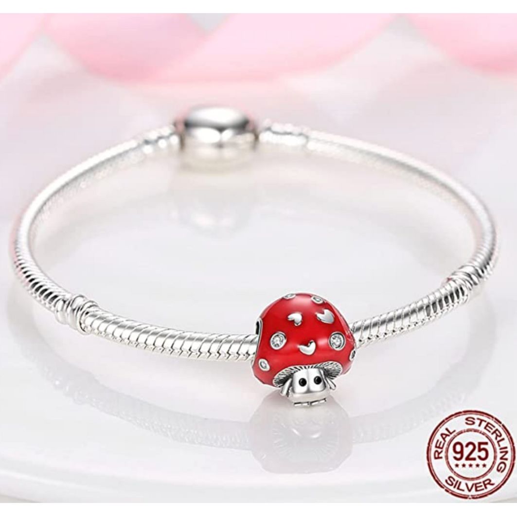 Introducing the Mushroom Charm - a whimsical and enchanting addition to your charm collection that captures the magic and mystery of the forest's most delightful fungi. It's perfect for nature lovers, fairy tale enthusiasts, and anyone who appreciates the playful charm of the humble mushroom. The design features an adorable, intricately detailed mushroom in a vibrant red colour with a gracefully curved stem. This enchanting charm evokes the magic and wonder of the natural world, symbolizing growth, transformation, and the enchanting allure of the unknown.