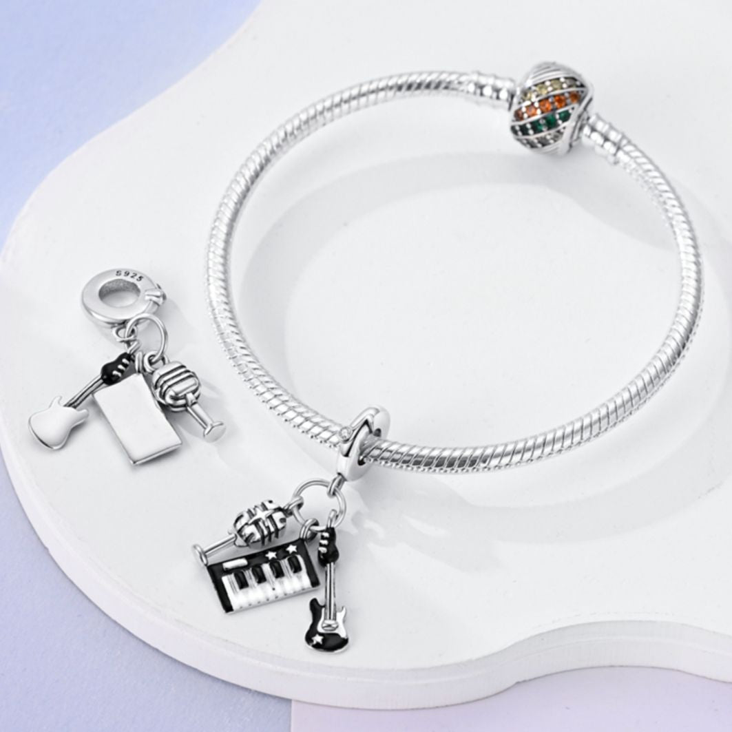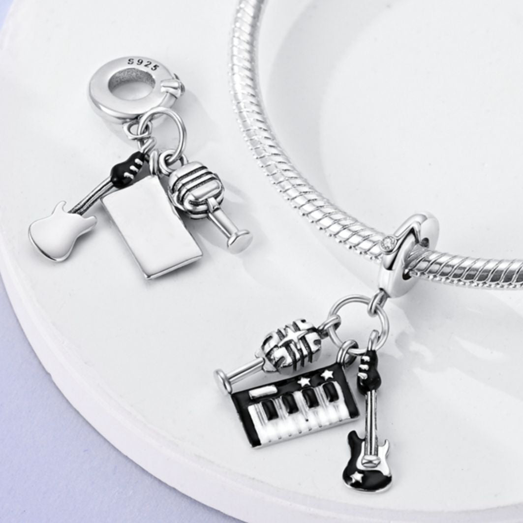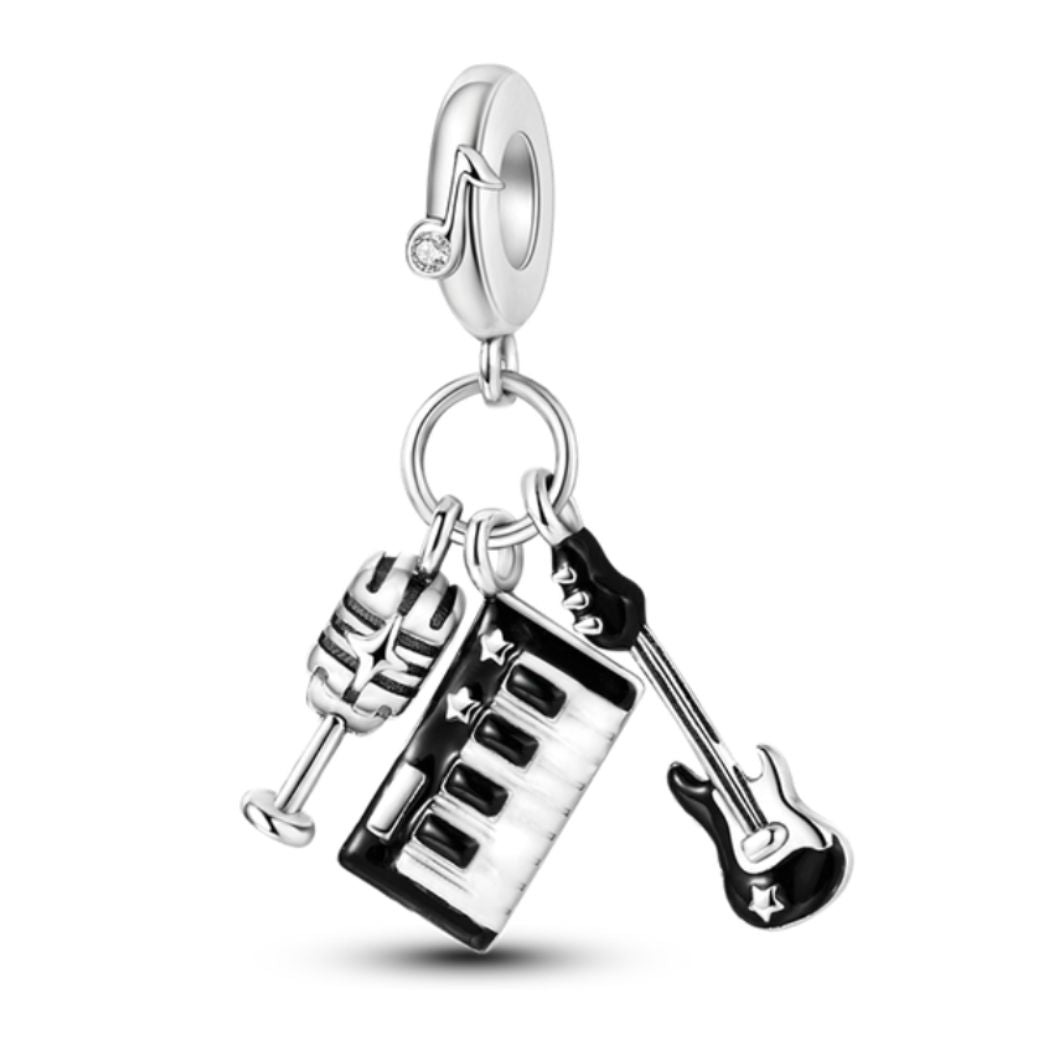 Comprising of a microphone, guitar and keyboard, this charm brilliantly encapsulates the universal language of music, making it an exquisite accessory for those who breathe rhythm and melodies. Whether you're a singer strumming your stories, a guitarist riffing through emotions, or a pianist invoking magic with keys; this charm is a tangible reflection of your passion.
