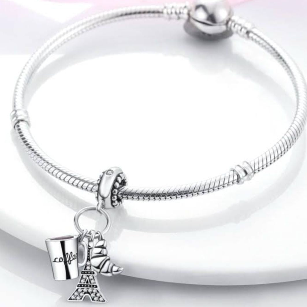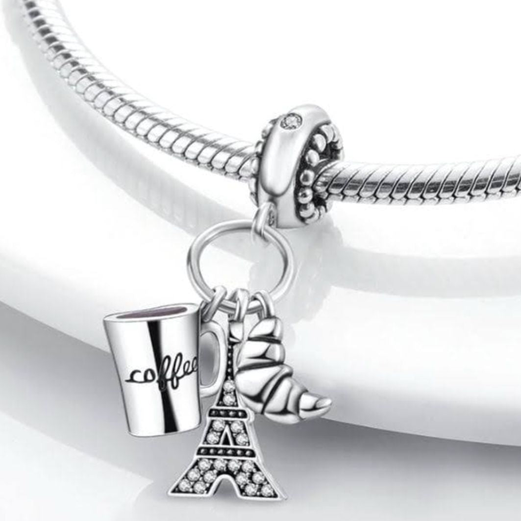 This charming and delightful charm captures the essence of a perfect Parisian breakfast. The charm features a detailed design of the iconic Eiffel Tower, a freshly baked croissant, and a cup of coffee. Crafted with care from high-quality materials, the Paris Trio Charm is built to last. It's lightweight and easy to attach to any bracelet or necklace, making it a versatile addition to your jewelry collection. The Paris Trio Charm is a fun charm for people who love the enchanting city of Paris and the French culture!