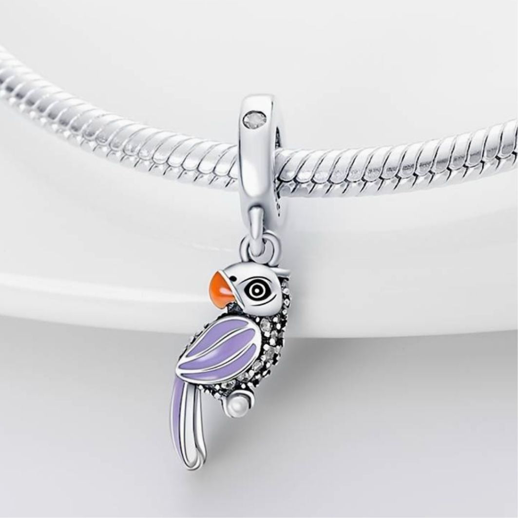 This colorful and vibrant charm captures the beauty and uniqueness of parrots, which are known for their bright and vivid plumage. The charm features a detailed design of a parrot with purple feathers and an orange beak. The Parrot Charm is not only a great item for bird enthusiasts, but also makes a fun and playful addition to your collection. Add the Parrot Charm to your collection today and let the beauty and vibrancy of these magnificent birds inspire you!