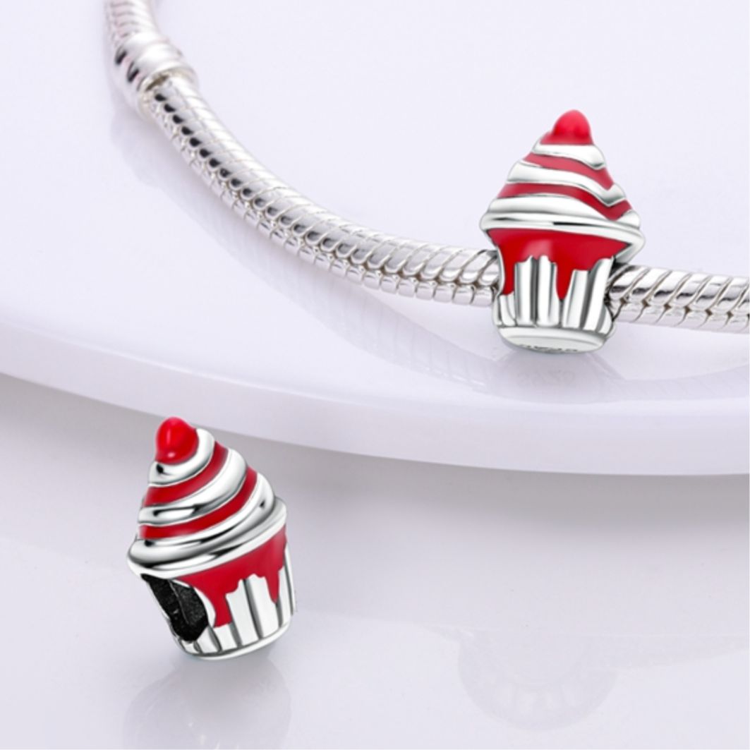 The Red Cupcake Charm is a delightful and whimsical addition to your charm collection that captures the essence of sweetness, celebration, and the timeless joy of indulging in a delicious treat. It's perfect for dessert lovers, baking enthusiasts, and anyone who appreciates the allure and charm of this adorable miniature cupcake. The design features a beautifully detailed cupcake with a red enamel frosting, complete with delicate silver accents that add a touch of sparkle and shine. This captivating accessory embodies the essence of sweetness, happiness, and the love for life's little indulgences.