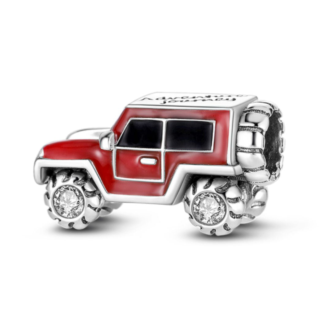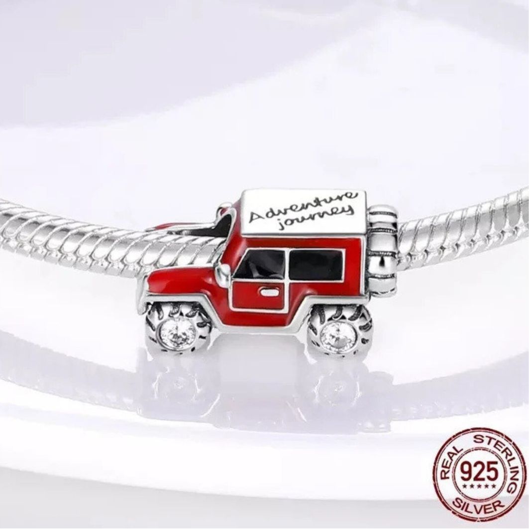 This rugged and adventurous charm captures the spirit of off-road exploration and adventure. The charm features a detailed design of a red jeep with its distinctive features, including the headlights and wheels; and has "Adventure journey" written on its roof. The Red Jeep Charm is not only a great accessory for off-road enthusiasts, but also makes a fun and playful addition to any charm collection. Purchase the Red Jeep Charm today and let the thrill and freedom of off-road exploration inspire you!