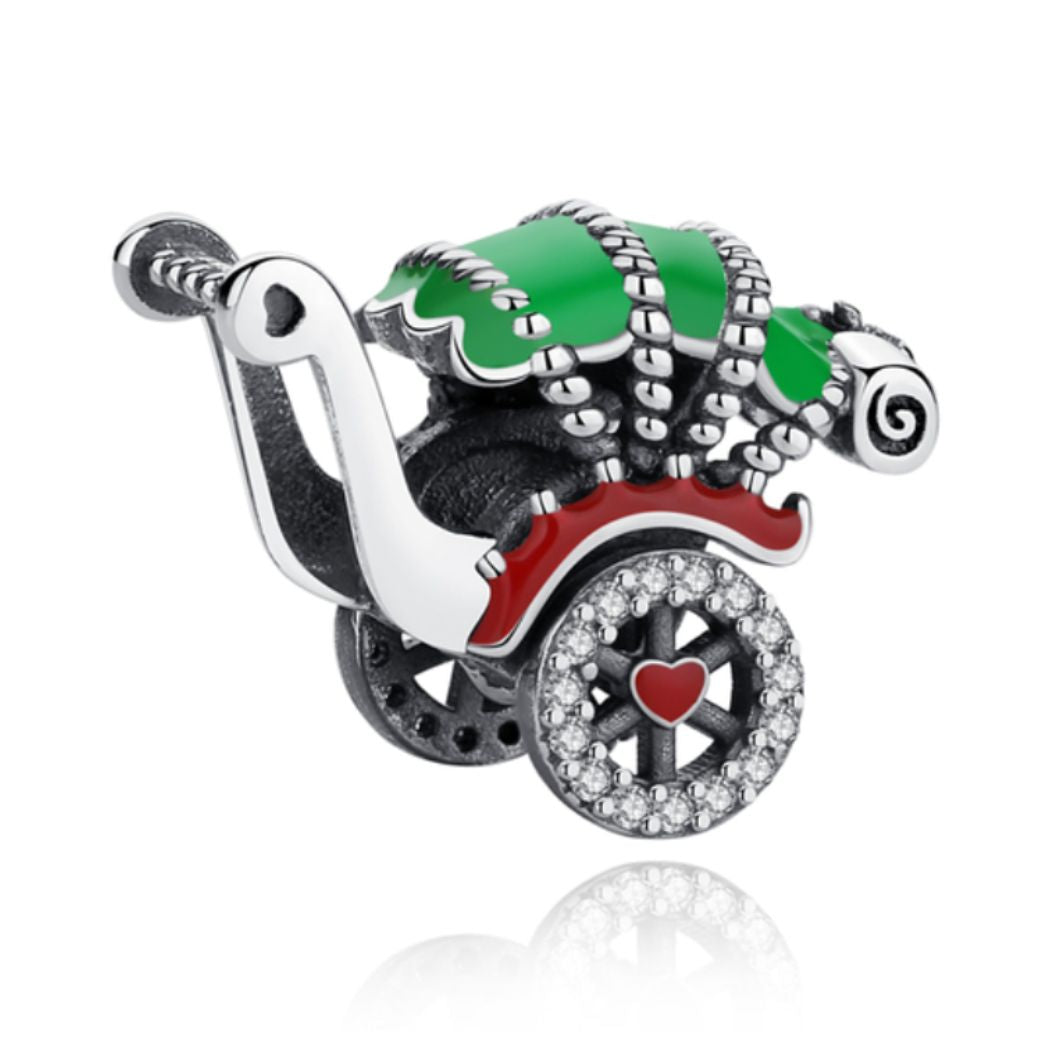 Our new Rickshaw Charm, the perfect accessory for anyone who loves the colorful and vibrant culture of Asia! This charm is designed to resemble the iconic three-wheeled rickshaws that are commonly used as a mode of transportation in many Asian countries. Crafted from high-quality materials, this charm features intricate details that bring the rickshaw to life, from the unique shape of the body to the detailed wheels and handlebars. The charm is finished in a beautiful metallic tone, adding a touch of elegance and sophistication to the design. This Rickshaw Charm is perfect for anyone who loves travel and exploring new cultures, especially those who have a soft spot for Asia. It is a great way to show off your unique style and personality, and will make a great addition to any outfit.