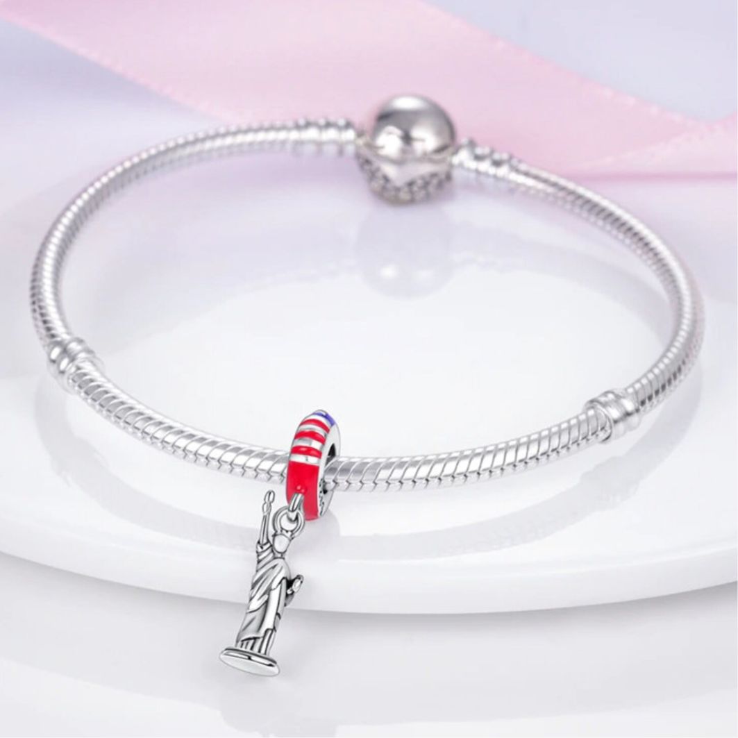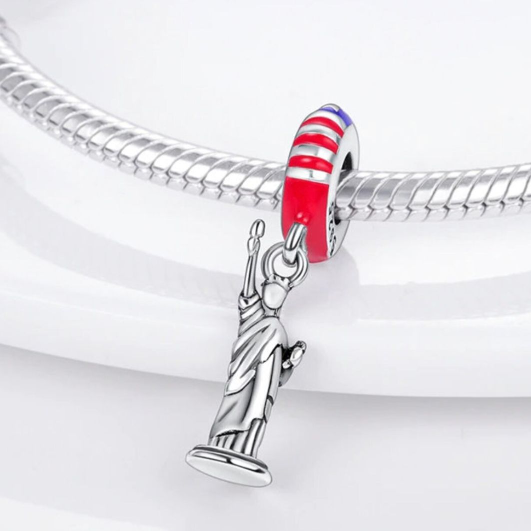 The Statue of Liberty Charm is stunning and iconic capturing the essence of freedom, democracy, and the enduring symbol of American values. This charm is perfect for history enthusiasts, fans of patriotic design, and anyone who appreciates the allure and charm of the legendary Statue of Liberty. Expertly crafted from high-quality, hypoallergenic sterling silver, the Statue of Liberty Charm is designed for lasting shine and durability. The design features a beautifully detailed representation of the Statue of Liberty, showcasing her iconic torch and crown, symbolizing the light of freedom and the welcoming beacon of hope for millions of immigrants. This captivating accessory embodies the essence of liberty, unity, and the timeless values that make America great.