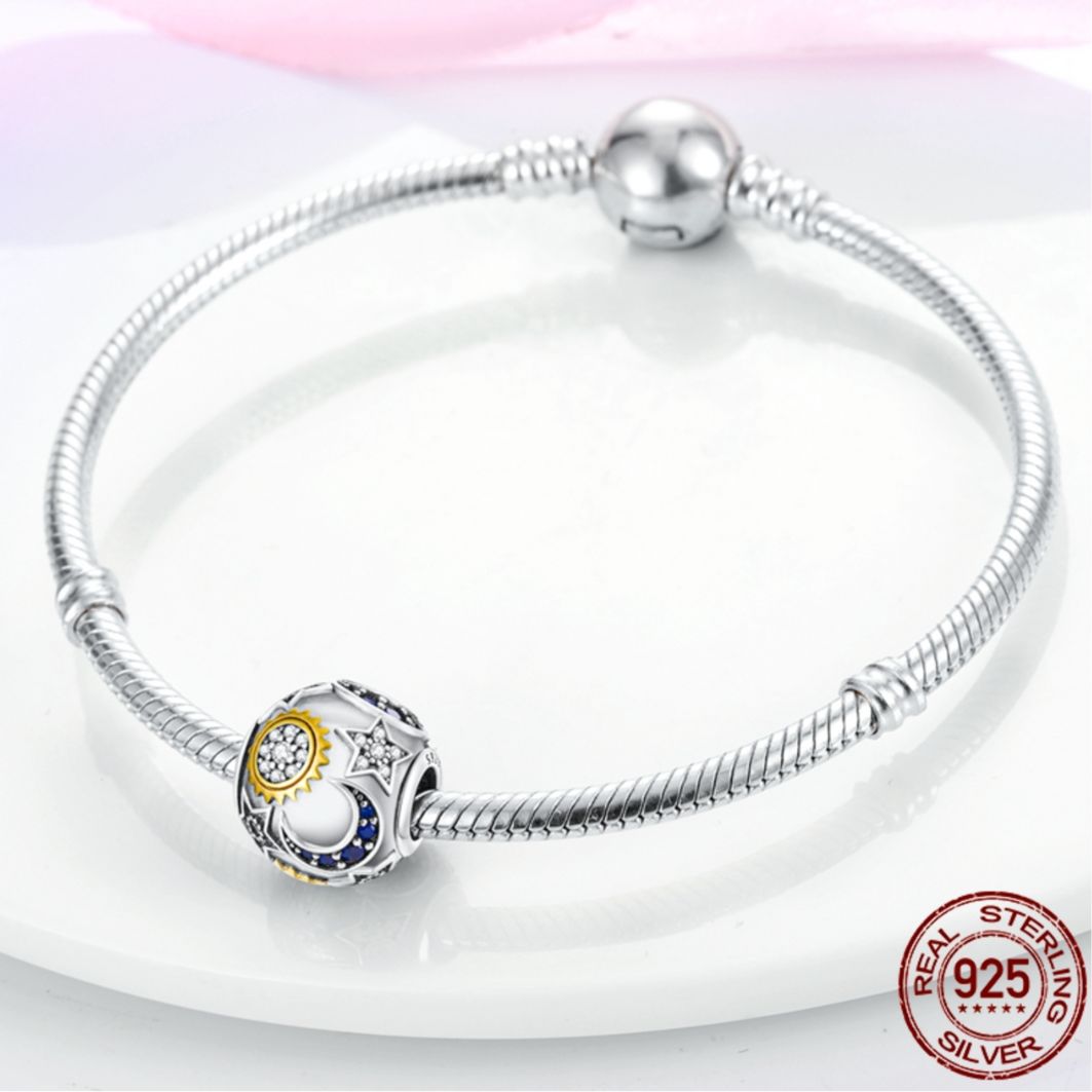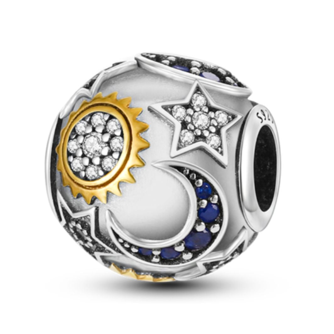 This elegant and beautiful charm captures the magic and wonder of celestial bodies. The charm features a detailed design of the sun, moon, and stars; arranged in a beautiful and intricate pattern. Crafted with care from high-quality materials, the Sun, Moon and Star Bead Charm is built to last. It is lightweight and easy to attach to any bracelet or necklace, making it a versatile addition to your jewelry collection. The Sun, Moon and Star Bead Charm is great for those who love astronomy and the night sky, but also makes a thoughtful gift for someone who appreciates the beauty and mystery of the universe.