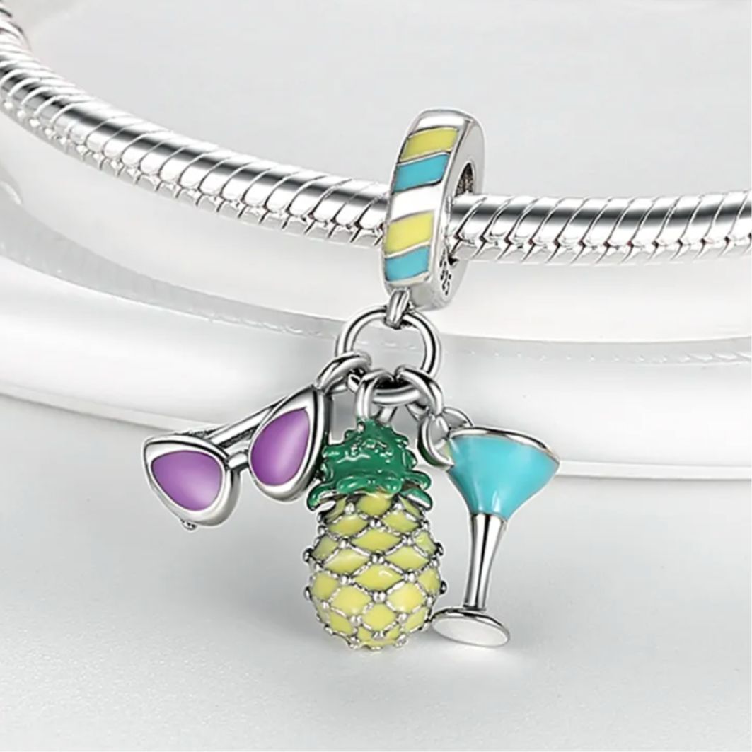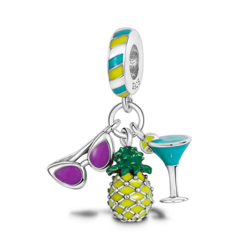 This fun and playful charm captures the carefree spirit of a tropical getaway. The charm features a detailed design of three iconic symbols of the tropics - sunglasses, a pineapple, and cocktail glass. The Tropical Trio Charm is a fun accessory for vacation lovers and beach enthusiasts; making it a fun and playful addition to your charm bracelet or necklace. It is perfect for adding a touch of tropical charm to your outfit, whether you're lounging by the pool or daydreaming of your next getaway!