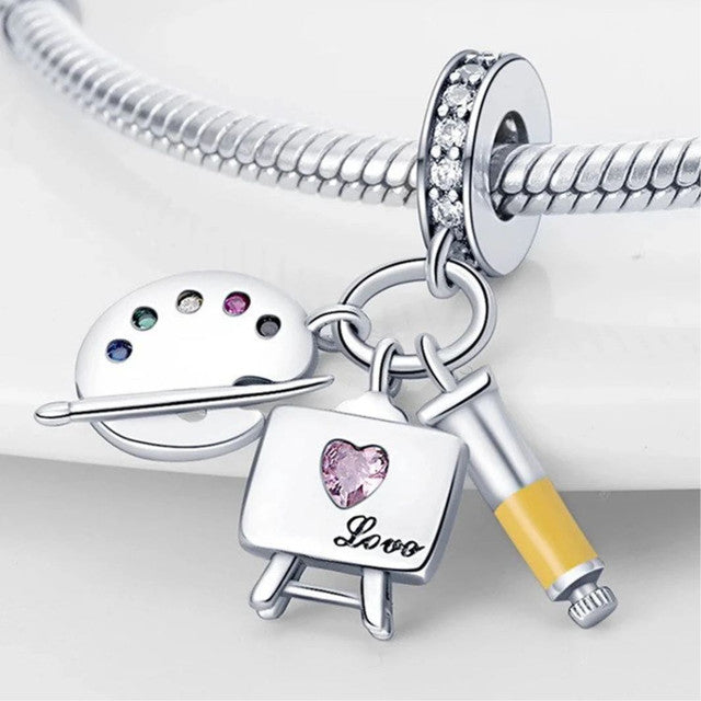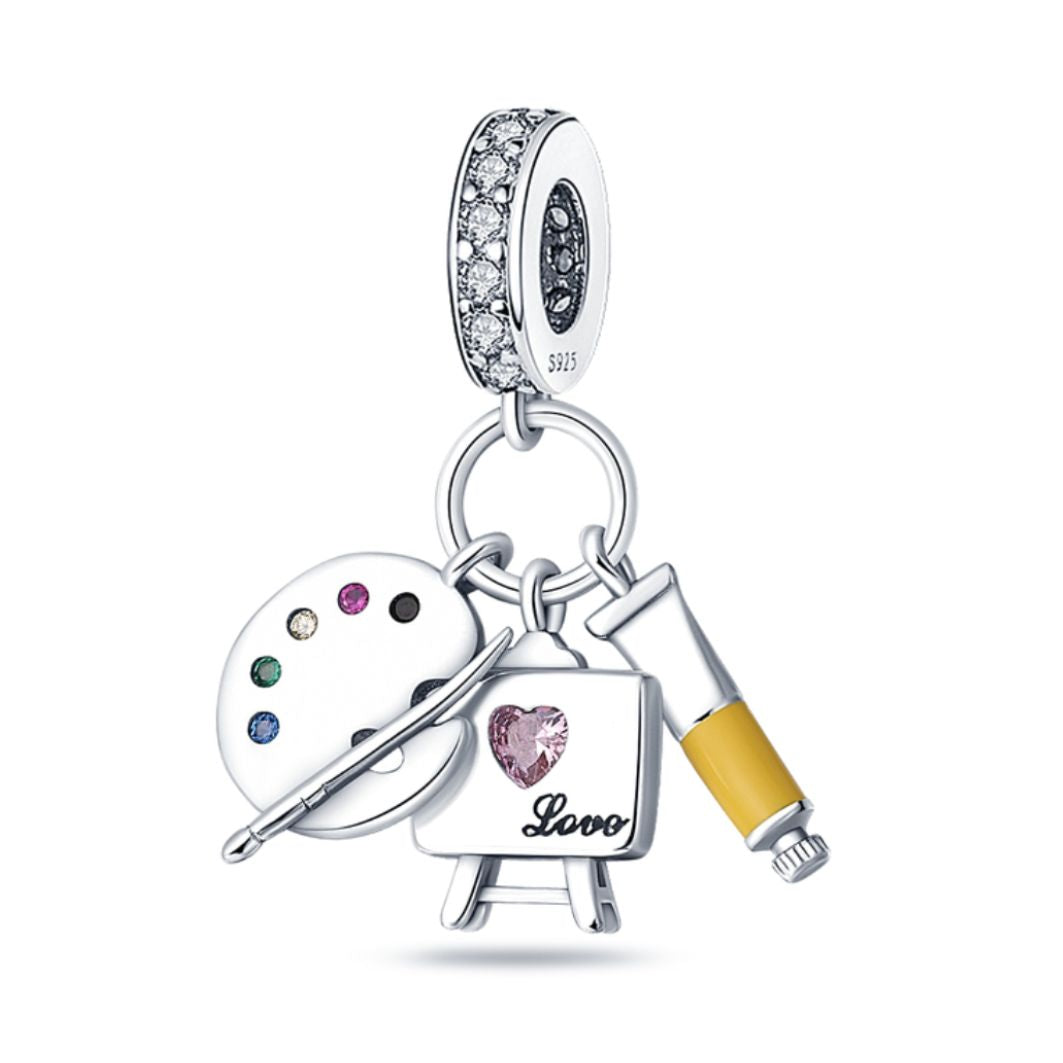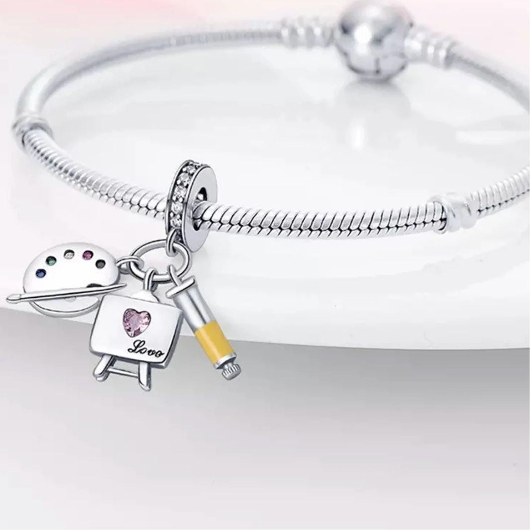 Introducing the Art Lover Trio Charm - a creative and inspiring charm that captures the essence of artistic passion, the beauty of self-expression, and the timeless appreciation for the world of art. It's the perfect charm for art enthusiasts, creative souls, and anyone who appreciates the allure and charm of these miniature masterpieces. The set features three beautifully detailed charms, including a painter's palette and a brush, an easel, and an acrylic paint tube; symbolizing the tools and inspiration behind every artistic creation. This captivating accessory embodies the essence of artistic passion, imagination, and the love for self-expression.