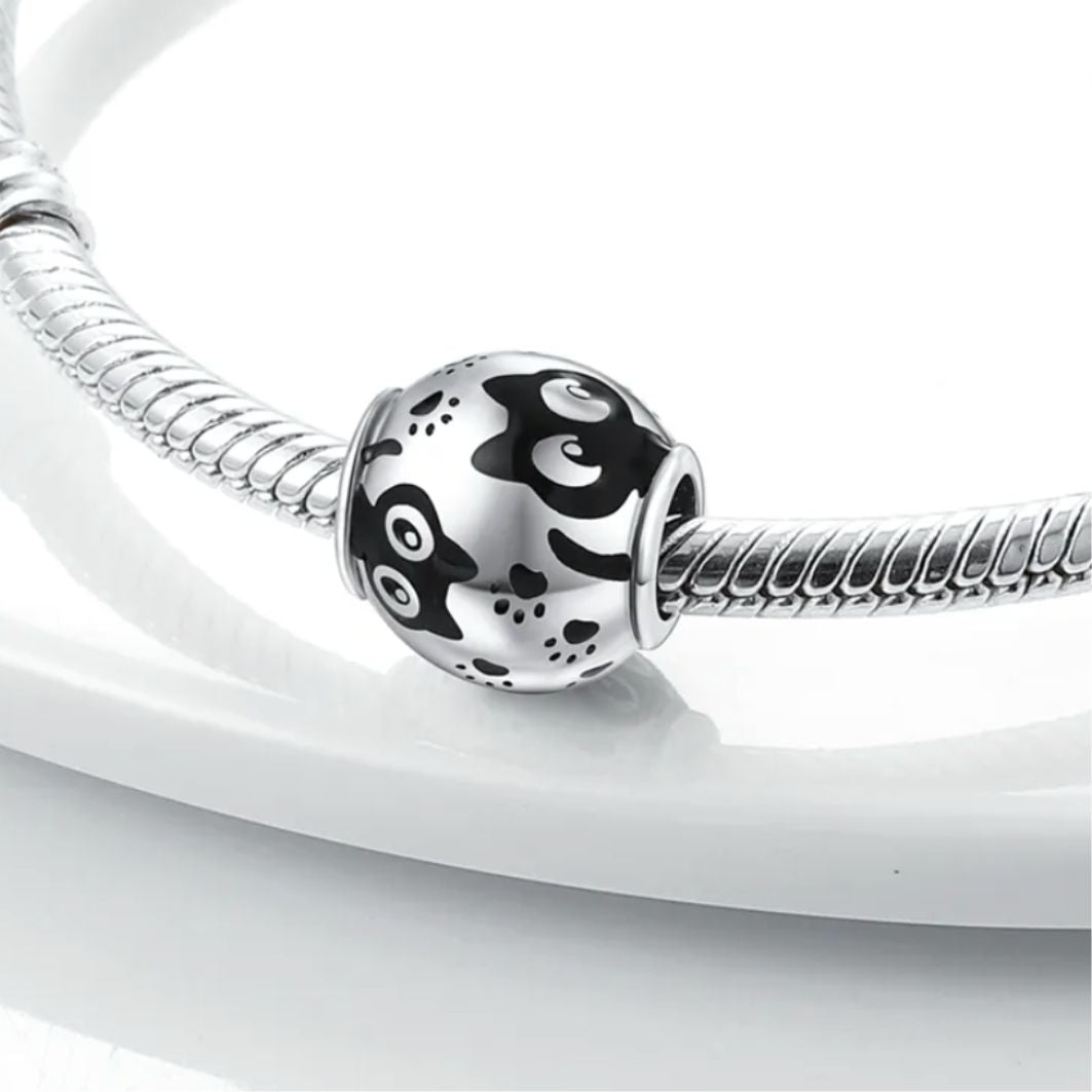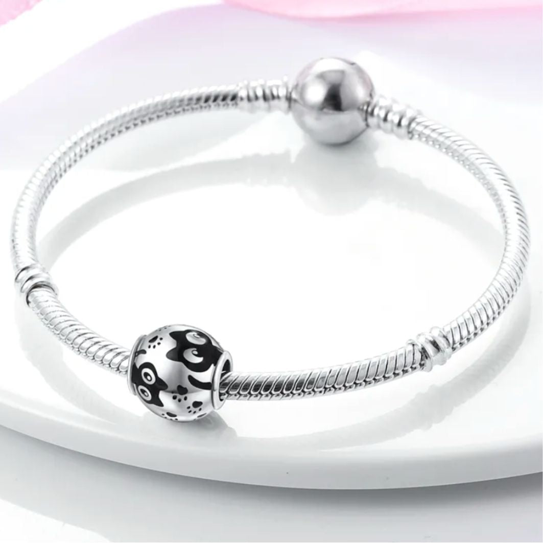 This playful charm captures the cuteness and charm of a big-eyed cat. It features a silhouette of a cat with big eyes and paw prints on a silver bead. The Big Eyed Cat Bead Charm is purrfect for cat lovers and pet enthusiasts, and also makes a thoughtful gift for friends and family who appreciate the cuteness and charm of cats. It's perfect for adding a touch of personality and playfulness to your charm bracelet or necklace. At Charmsey, we are dedicated to offering unique and high-quality charms that cater to a variety of interests. Add the Big Eyed Cat Bead Charm to your collection today and let the adorable charm of cats brighten up your day!