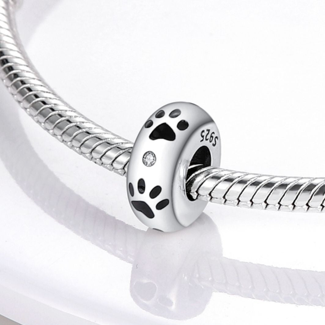 This charm captures the essence of love and affection between pets and their owners. The charm features a detailed design of paw prints around the bead with a sparkling gemstone in between. Pet lovers and animal enthusiasts will love this Paw Print Bead Charm to add a touch of class and affection to their bracelet.