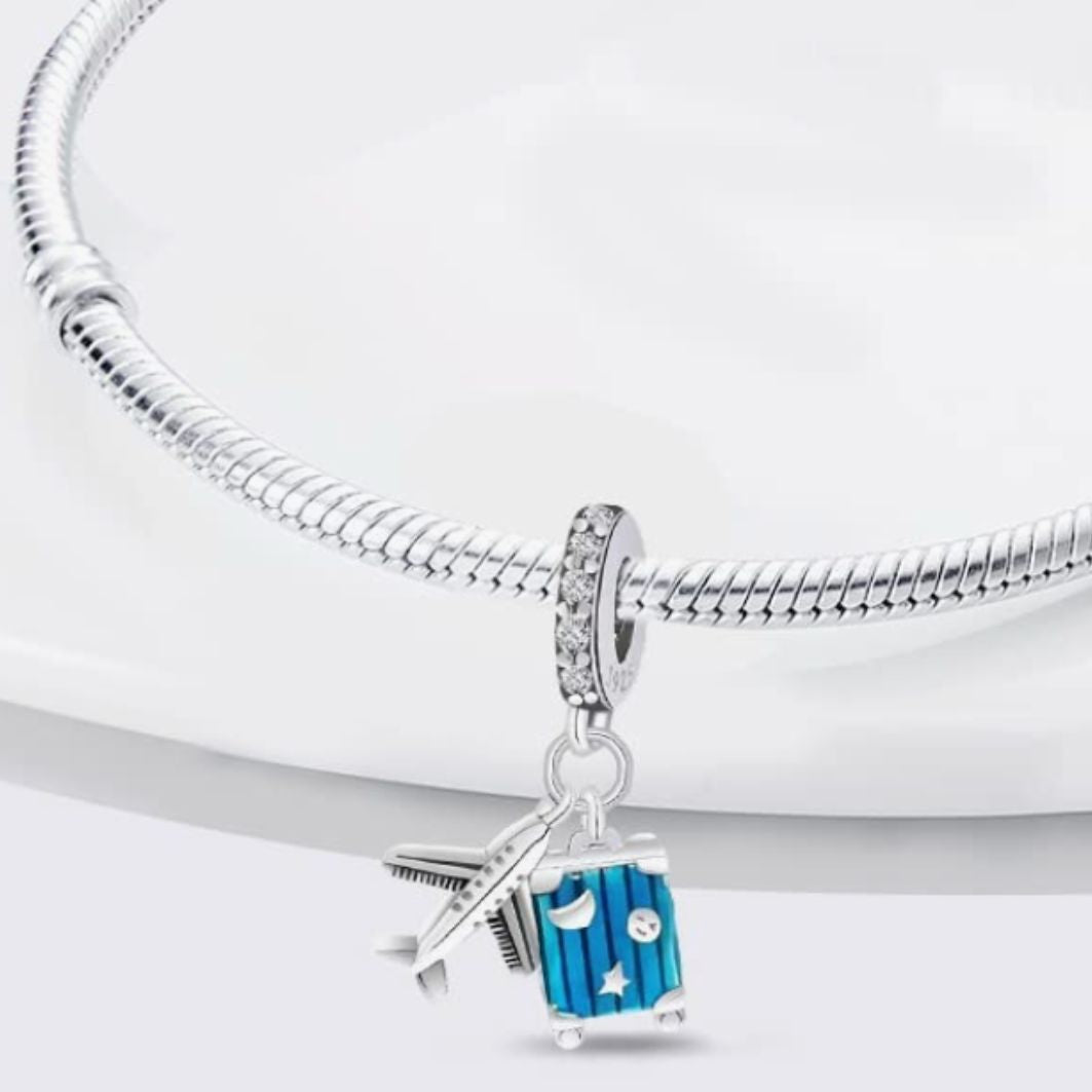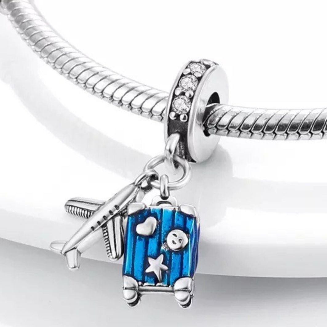 Travel-Inspired Design: The Plane Luggage Charm showcases a charming airplane and luggage, perfect for wanderlust enthusiasts.