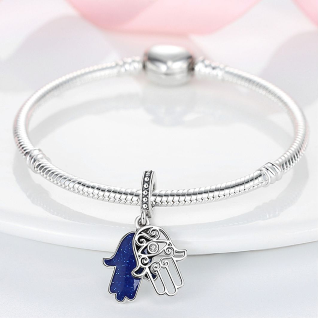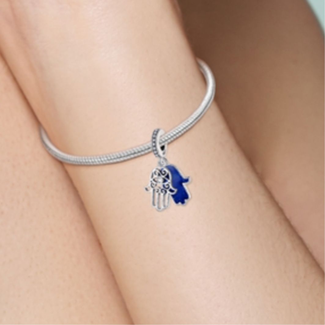 The Dual Hamsa Hand Charm celebrates the ancient symbol of protection and good fortune. It's and ideal charm for those who appreciate the spiritual significance of the Hamsa Hand and seek to carry its blessings with them wherever they go. The design features two beautifully detailed Hamsa Hands, creating a mesmerizing layered effect. The Hamsa Hand, also known as the Hand of Fatima or Hand of Miriam, is an ancient symbol believed to ward off the evil eye and bring its wearer happiness, luck, health, and good fortune.