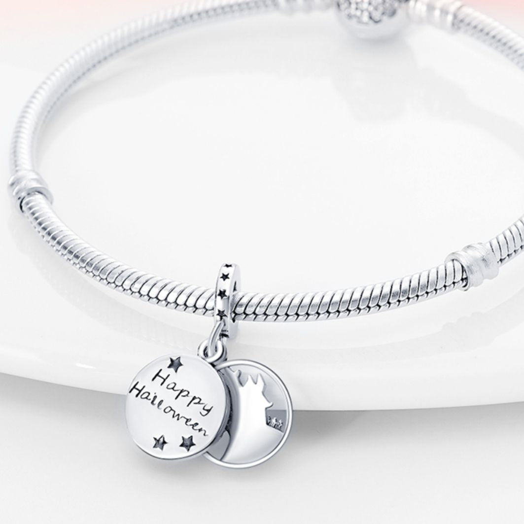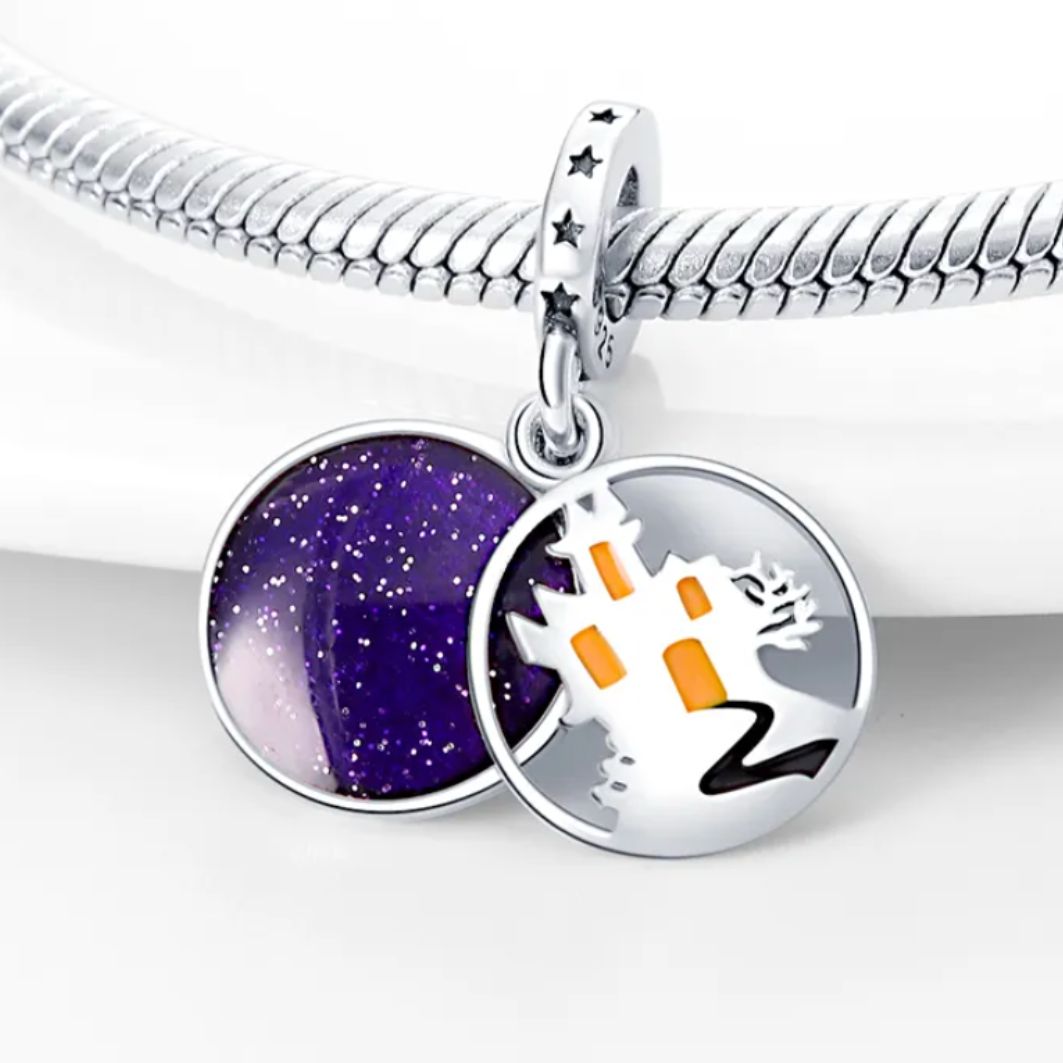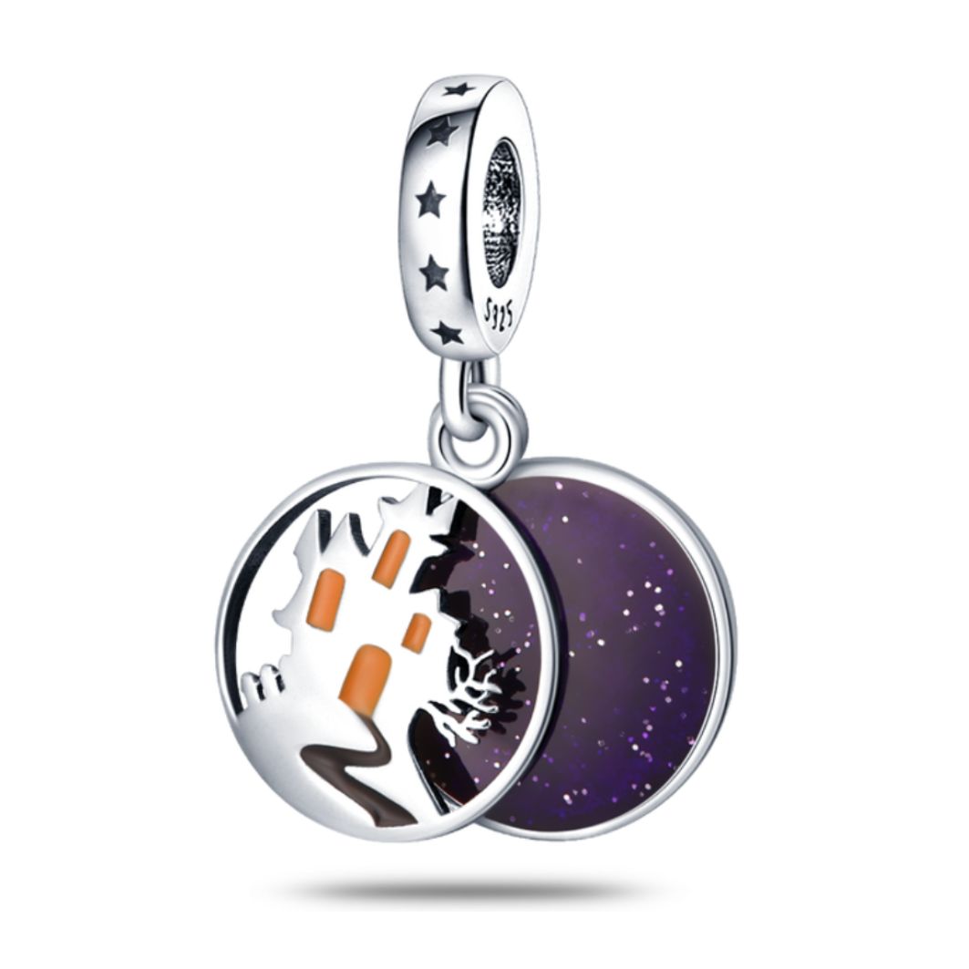 - Delicate Haunted House charm with enchanting purple night sparkles.