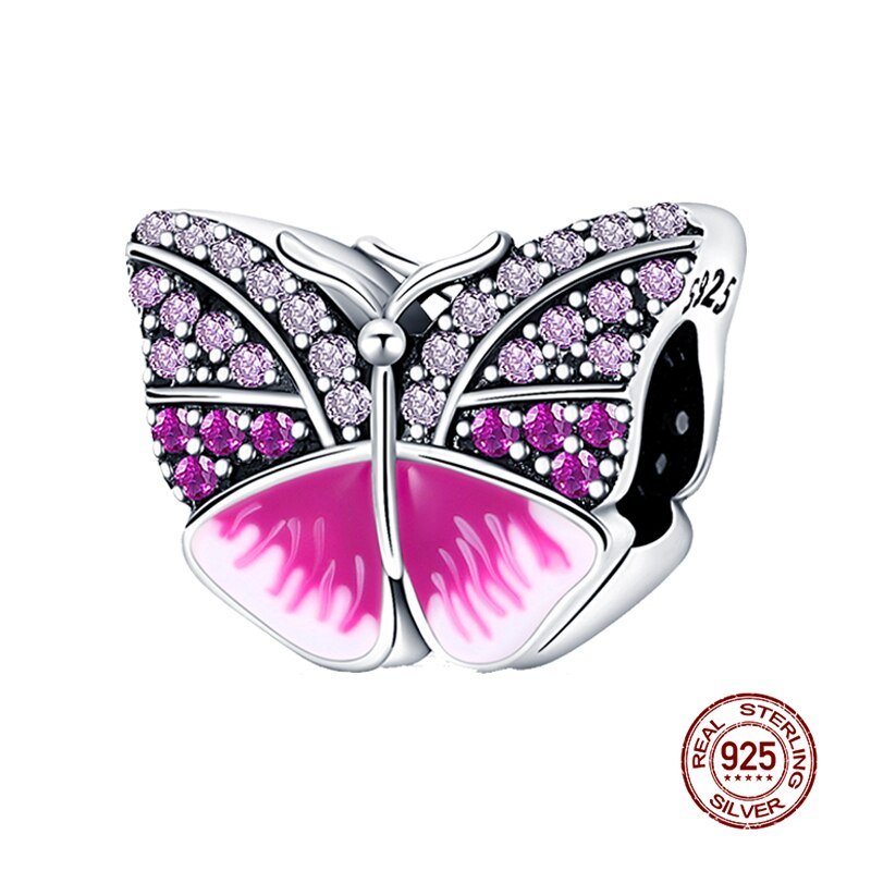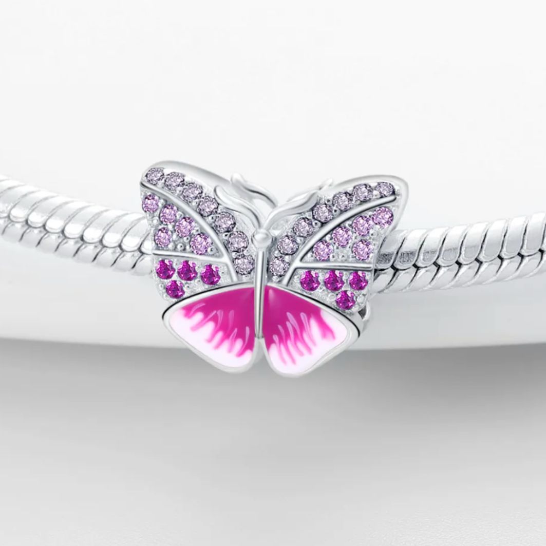 The Pink Butterfly Charm is a delightful and enchanting charm that captures the beauty and grace of one of nature's most captivating creatures. It's the perfect accessory for nature lovers, fans of delicate designs, and anyone who appreciates the elegance and charm of the butterfly. The design features a stunning pink enamel-coated butterfly, complete with intricate silver detailing that showcases the delicate pattern of its wings. This charming accessory embodies the essence of transformation, growth, and the gentle beauty of nature's most graceful creatures.