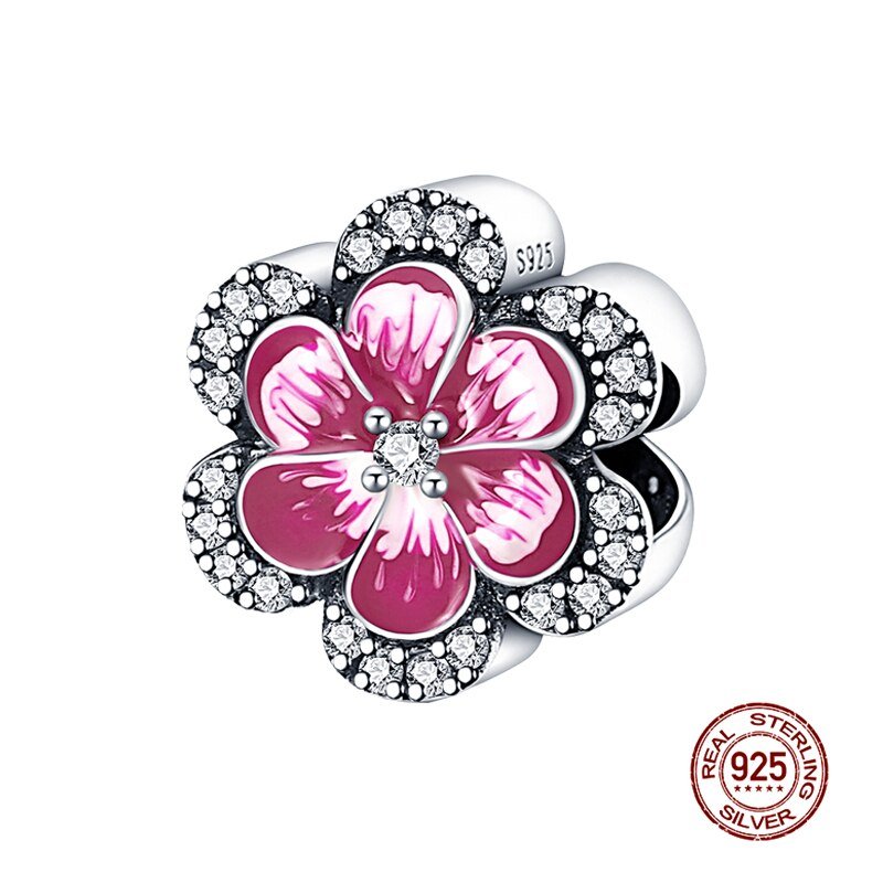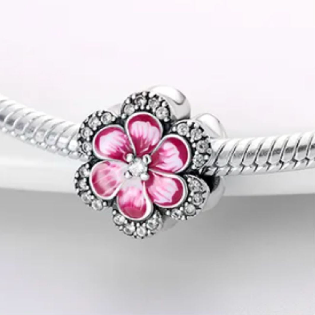 The Pink Flower Charm is a lovely and enchanting charm that captures the delicate beauty and charm of nature's blossoms. It's great for nature lovers, fans of floral designs, and anyone who appreciates the elegance and allure of the blooming flowers. The design features a beautiful pink enamel-coated flower, complete with intricate silver detailing that highlights the graceful petals and center. This charming accessory embodies the essence of renewal, growth, and the gentle beauty of nature's most exquisite creations.